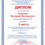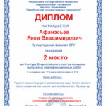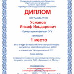 Все работы Кумертауского филиала ОГУ заняли призовые места. Работам Гусева С.А., Рябиченко А.Н. (руководитель Кириллов Е.Ю.), Усманова И.И. (руководитель Золотарев Е.С.) были присуждены первые места в своих номинациях. Работы Махмутова И.И. (руководитель Кириллов Е.Ю.), Афанасьева Я.В., Троценко В.В. (руководитель Золотарев Е.С.) заняли вторые почётные места.