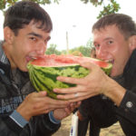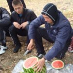 Арбузы пришлось нести поочереди — вес каждого составлял 15 кг. И вот привал – шутки, игры на знакомство и сплочение коллектива, совместное поедание арбуза, хорошая погода – все это сделало первый выход группы на природу незабываемым.