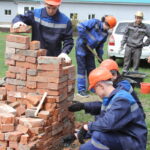 В первый день Межрегионального слета, после проведения инструктажа по охране труда и правилам безопасности, ребята прошли практическое обучение на специально организованных площадках и применили полученные знания в отработке новых навыков. Бригада штукатуров занималась подготовкой поверхности, приготовлением штукатурной смеси и нанесением штукатурки на стены, а также выравниванием и затиркой. Обучающиеся по профессии «Электромонтер» выполняли задания по монтажу электрических стендов и сборке электрических схем. Каменщики и бетонщики отрабатывали навык кладки простейших конструкций рядового простенка, выполняли вспомогательные подготовительные работы, такие как приготовление растворов с различными вяжущими.