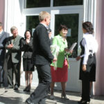 Посетила наш праздник и Богиня Мудрости и Знаний, которая передала свечу Знаний лучшим студентам выпускных групп Иванову Андрею (студент группы 06-ААХ), Сазонову Андрею (студенту группы 06-ЭПП), Мацуй Станиславу (студенту группы 06-ГСХ), Шаркунову Андрею (студенту группы 06-ПСК). «Пусть она будет символом ума, дерзаний, стремлений и поиска для всего вашего студенческого коллектива! С новым учебным годом Вас! С Днем Знаний!» — поздравила студентов Богиня.