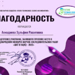 6 октября были подведены итоги XXXIII Международного конкурса научно-исследовательских работ «Шаг в науку – 2022», который проводился в период с 7 сентября 2022 г. по 3 октября 2022 г., организатор — Российское научное общество «Future Technologies: Science and innovations», г. Москва. Участниками конкурса стали студенты, магистранты, аспиранты Российской Федерации и зарубежных учебных заведений, которые представили научные статьи, тезисы, литературные обзоры, курсовые работы, дипломные работы, научно-исследовательские работы.