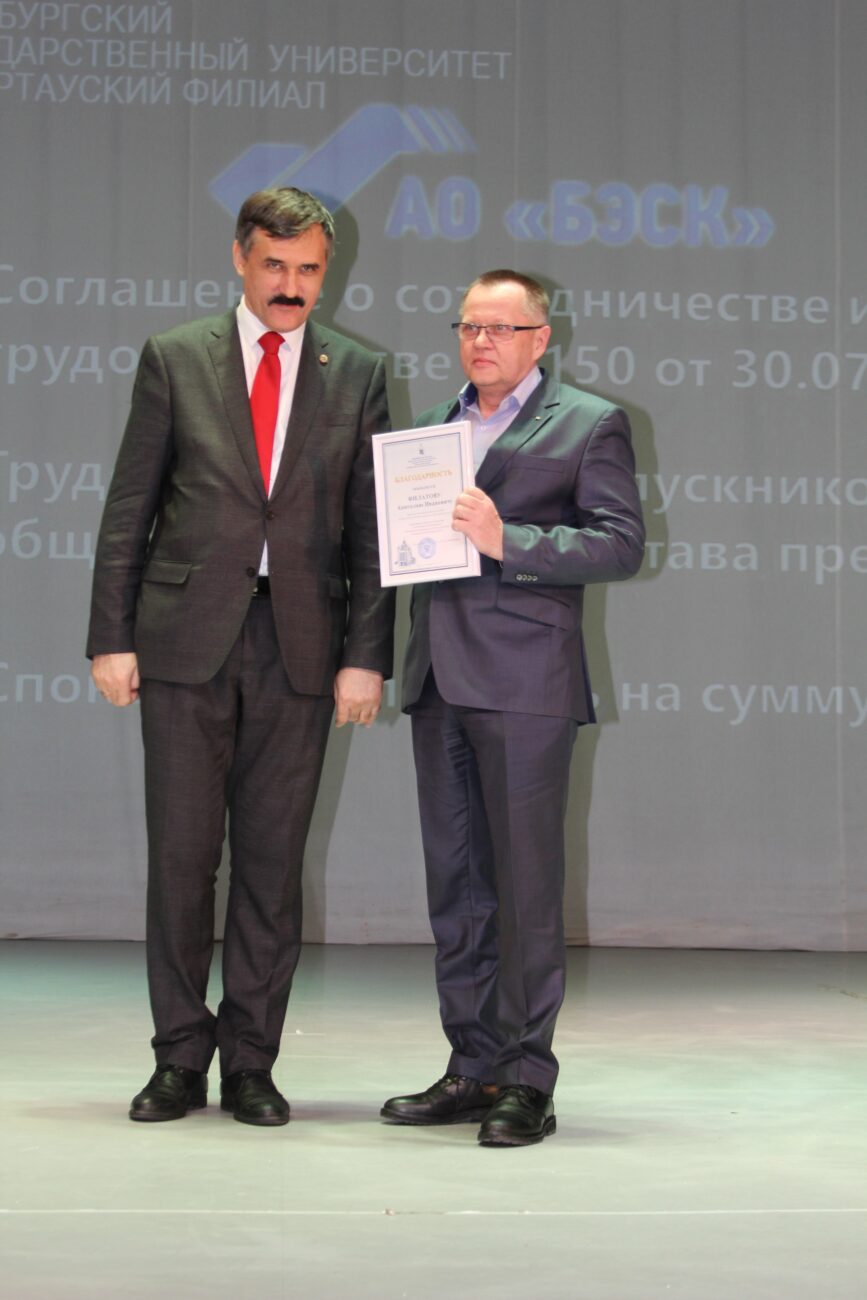 За помощь и развитие материальной базы Кумертауского филиала ОГУ благодарности от головного ВУЗа вручены руководителям предприятий А.И.Филатову, М.А. Зеленину и З.З. Исхакову.