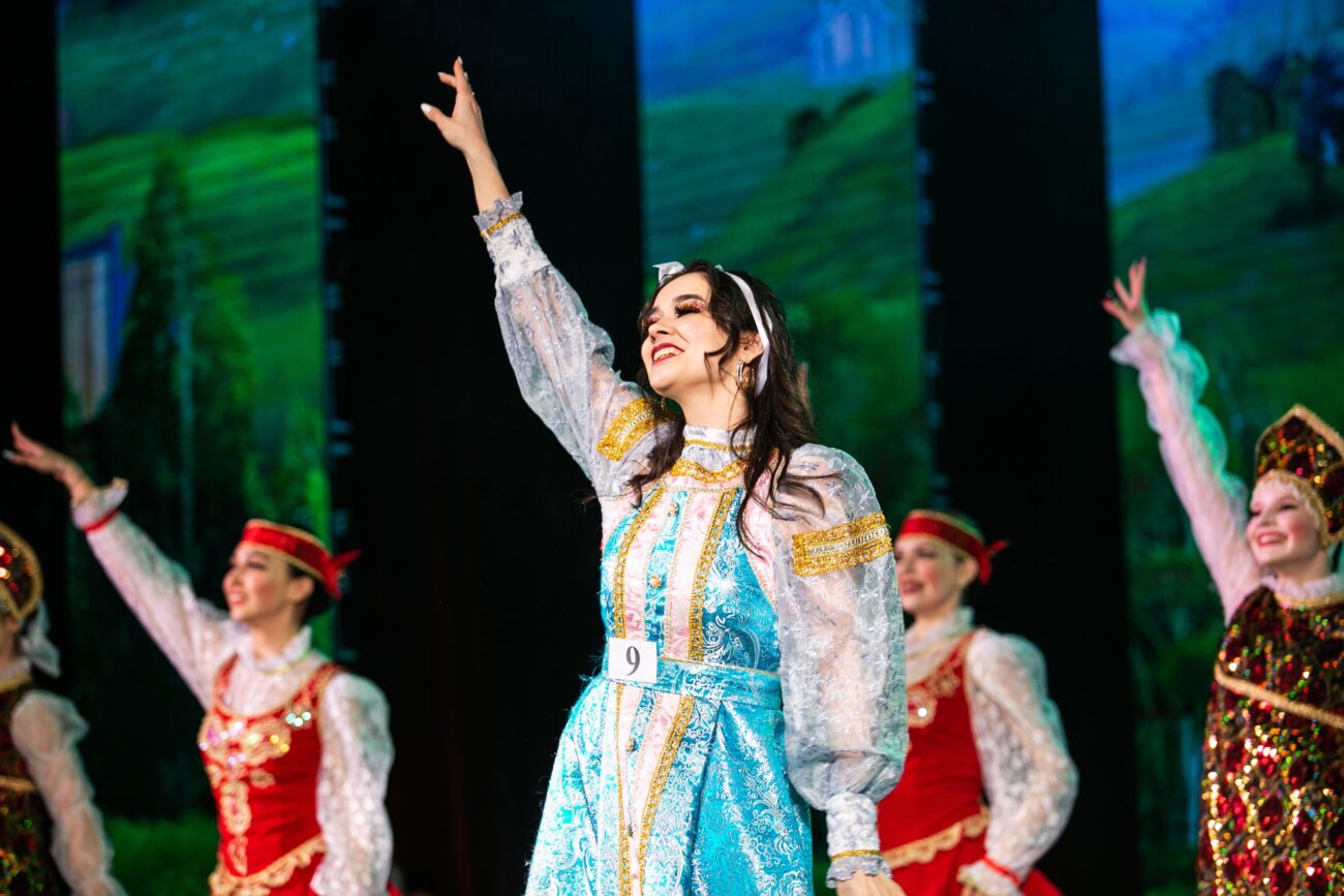 Знакомство с участницами началось с визитки на тему «Кабы я была…». Выбор Ренаты пал на образ героини русской народной сказки — жар-птицу, который девушка раскрыла в коротком видео-сюжете. Визитка студентки вызвала бурные овации зала.