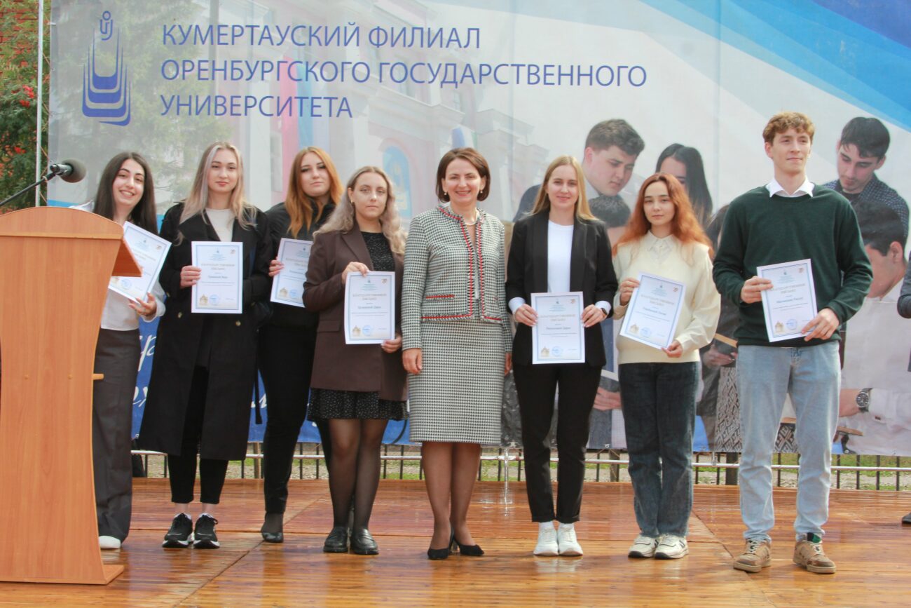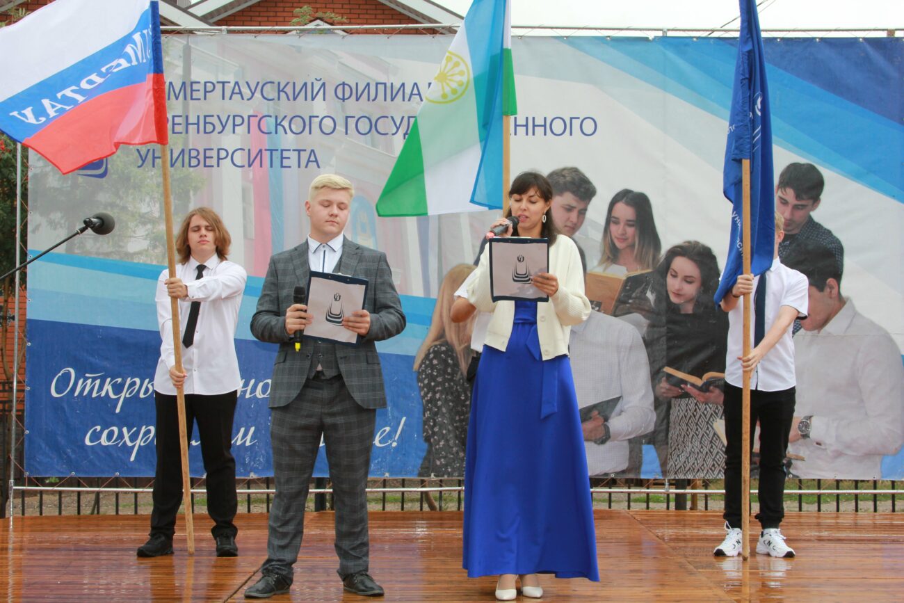 В День Знаний традиционно главными героями являются студенты, для них на территории корпуса №7 была организована торжественная линейка, которую напутственными словами открыла директор Кумертауского филиала ОГУ – Татьяна Сазонова. В ходе линейки состоялась церемония награждения отличившихся студентов и преподавателей благодарственными письмами, дипломами, а также удостоверениями и значками ГТО. Концертная часть программы была представлена яркими музыкальными и танцевальными номерами от творческих коллективов филиала.