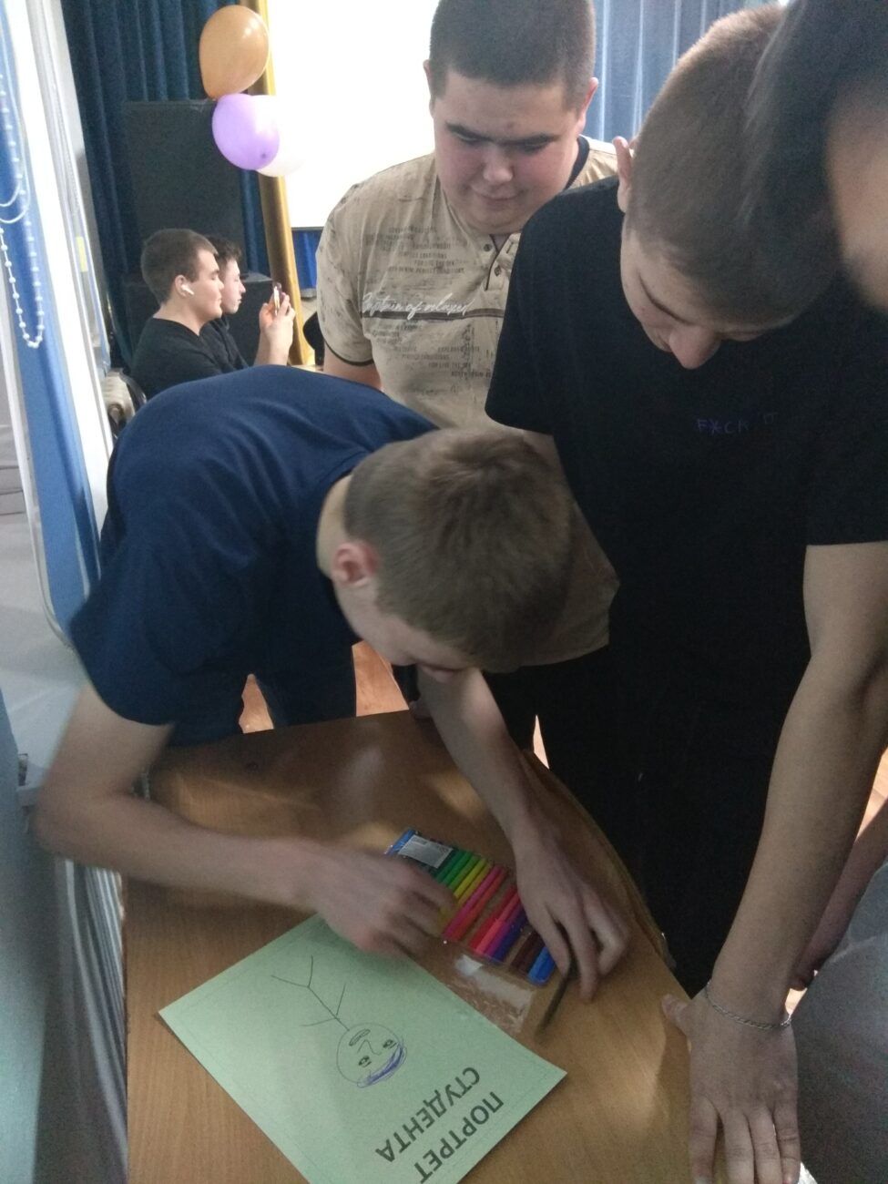 Ребят же проживающих в общежитии вечером ждало отдельное приключение, участниками которого стали они сами. Называлось мероприятие интригующе «Портрет студента», а уж что говорить о программе! Две команды, «Студиозусы» — старшекурсники и «Флешмены» — новички, устроили творческое состязание за самый интересный образ студента будущего. И что только они не делали – разыгрывали смешные сценки, пели в караоке, танцевали, рисовали, отвечали на вопросы викторины про символы быта студента, придумывали рекламные слоганы, играли в игру на сплочение «Атом-3.