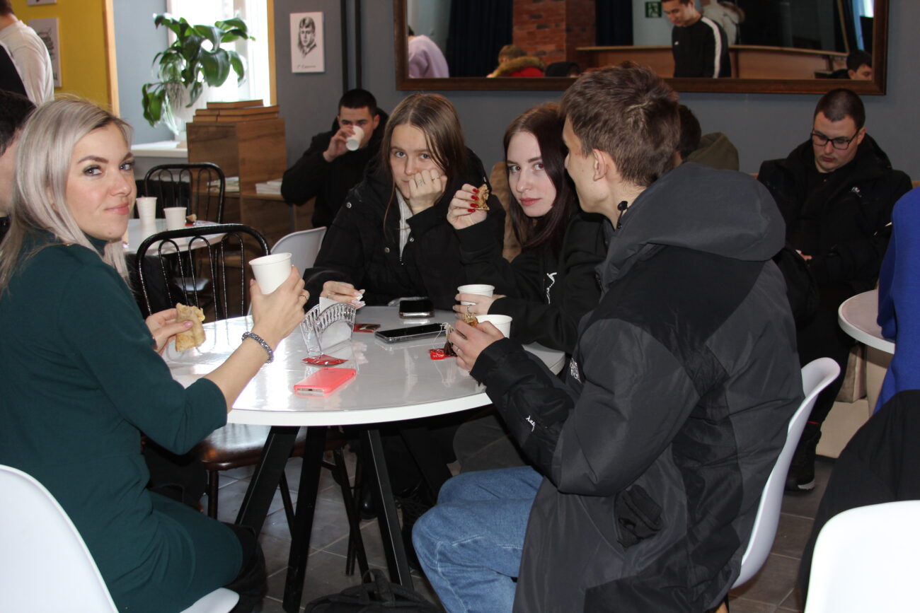 Ярким завершением Татьянина дня стало спортивно-развлекательное мероприятие, название которого — «Студенческий переполох» — уже само по себе отражало эмоциональный настрой события. Проходил «переполох» на улице. Погода выдалась морозная, но ребят задействовали в подвижных играх, так что никто не успел замерзнуть. Лейтмотивом мероприятия стали Олимпийские игры. Вооружившись импровизированным спортинвентарем – мячами, швабрами, тюбингамии и другим ребята состязались в керлинге, бобслее, перетягивании каната. А потом все пили горячий чай с блинами, угощались шоколадом в кафе арт-пространства «Форзац», смеялись шуткам и общались.