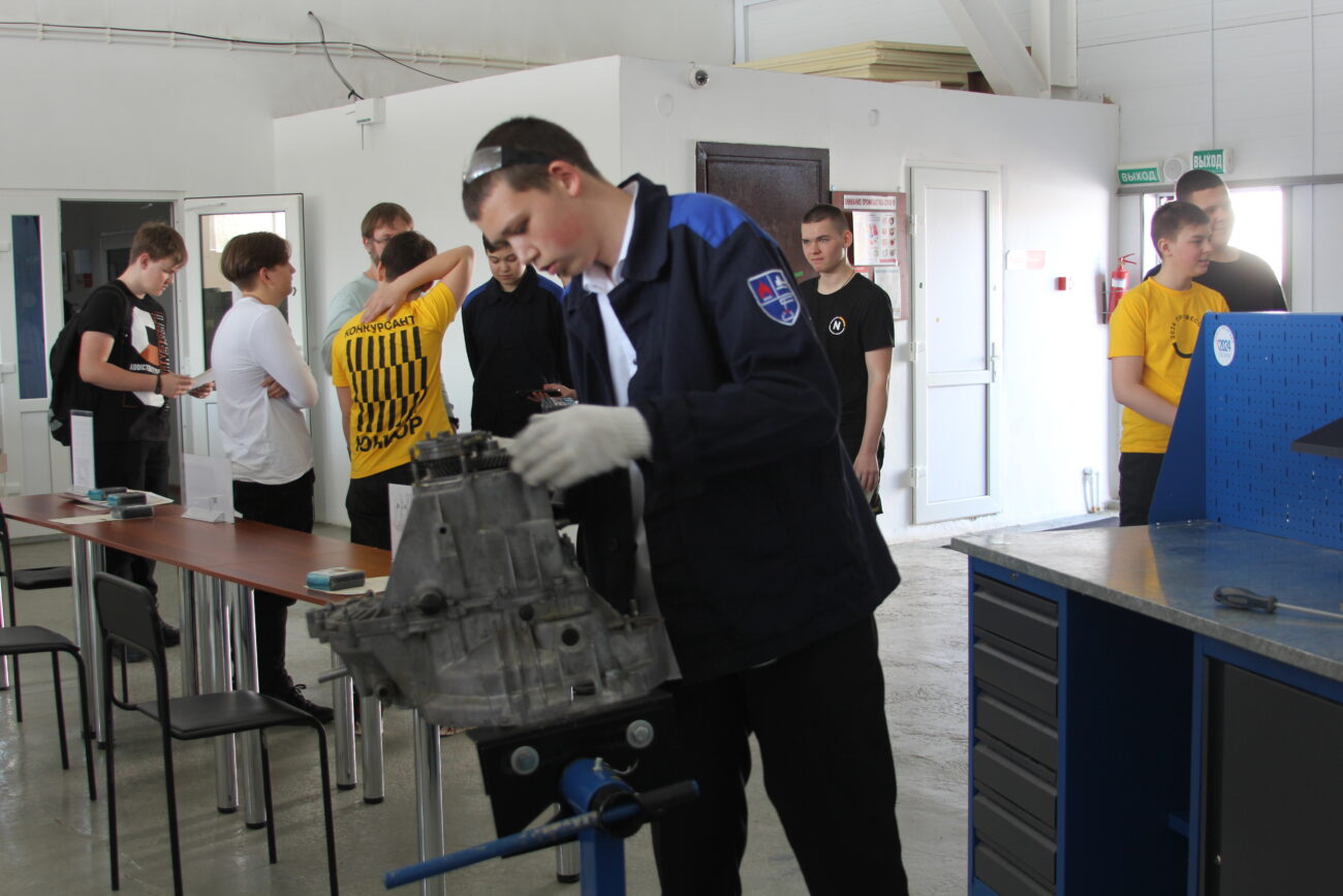 Продолжилось мероприятие конкурсом профмастерства. Автомастера на скорость разбирали и собирали коробку передач автомобиля, электромонтеры монтировали светильники, выполняли диагностику неисправностей электрооборудования и восстанавливали их работу, предприниматели презентовали свои бизнес-проекты.