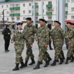 Во второй день студенты-конкурсанты ходили, так называемой, парадной коробкой из 28 человек. Говоря простым языком, парадная коробка – это вид построения и прохождения на параде, основным требованием которой является четное количество рядов по периметру? образуемой из участников расчета, фигуры.