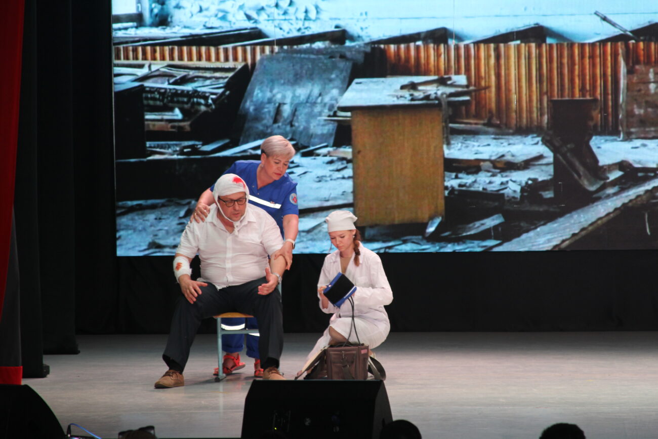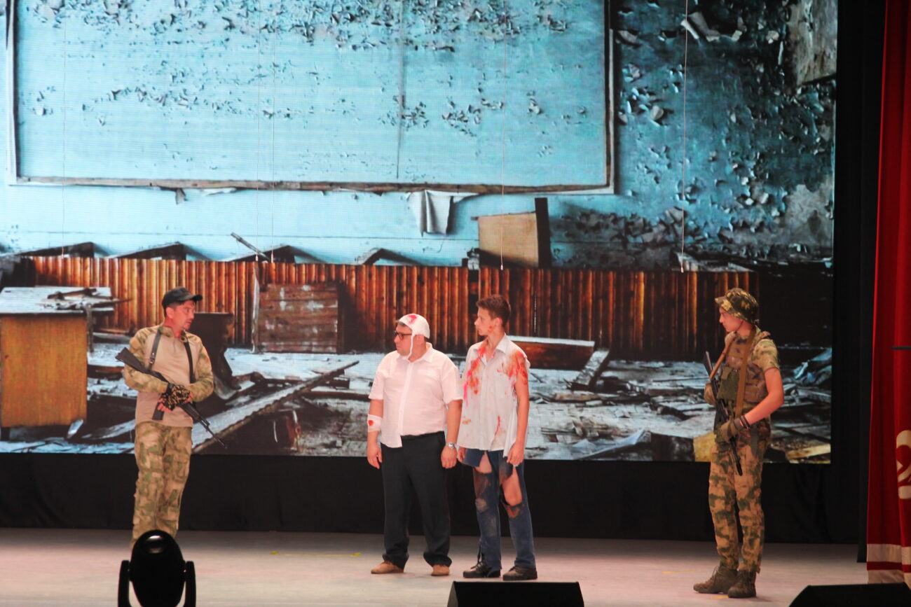 На сцене городского Дворца культуры «Угольщиков» состоялся военно-патриотический спектакль «Мы непобедимы!» под руководством режиссера Павла Каштанова (г.Оренбург). Инициатором постановки выступил Кумертауский филиал ОГУ, актерами же стали студенты, преподаватели и сотрудники вуза, а также руководители предприятий и учреждений города, горожане, жители Куюргазинского района и даже школьники.