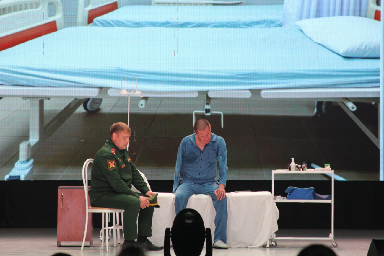 — Спектакль «Мы непобедимы!», можно сказать, вырос из другой моей постановки, — сообщил на вопрос о том, как рождался спектакль, его режиссер Павел Каштанов. — Дело в том, что в 2015-м году в Челябинском Театре драмы я ставил пьесу Дударева «Не покидай меня». Это была тоже двухактная история, но целиком про Великую Отечественную войну. А прошлом году мне поступила просьба написать сценарий, в котором бы звучала тема СВО. Я засел изучать материал и пришел к выводу, что события почти столетней давности в главном перекликаются с происходящим сейчас на Украине: наши бойцы СВО как и наши деды когда-то готовы жертвовать своей жизнью во имя Родины и у каждого имеется свой аргументированный повод для подвига.