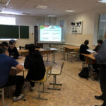 Для школьников была организована экскурсия по лабораторной базе кафедры, во время которой старший преподаватель кафедры Евгений Юрьевич Кириллов поделился своим опытом подготовки участников чемпионата «Профессионалы» по компетенции «Ремонт и обслуживание легковых автомобилей» и дал ценные советы тем, кто заинтересовался транспортной отраслью.