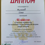 Диплом за I место по лыжным гонкам и Диплом за III место по плаванию в личном зачете завоевал Илья Михелёв, а Диплом за II место в метании гранаты удостоилась команда ВПК «Звезда» нашего Филиала.
