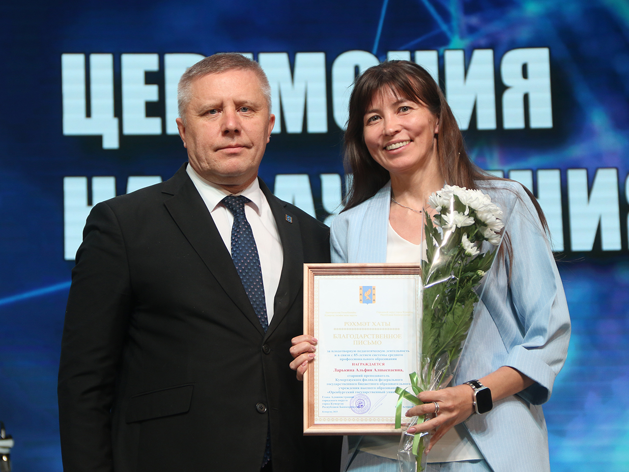 С поздравительной речью к педагогическому составу и студентам обратилась директор Кумертауского филиала ОГУ, Почетный работник сферы образования РФ Татьяна Сазонова. Она подчеркнула значимость праздника и выразила благодарность за вклад в развитие среднего профессионального образования: