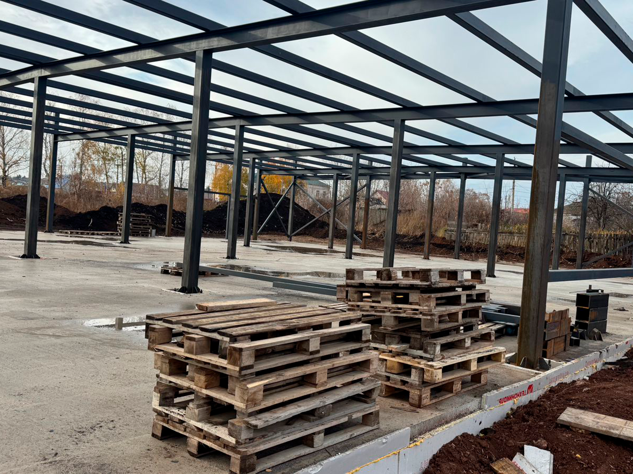 На площадке строительства супермаркета «Пятерочка» на данный момент уже возведен фундамент здания, и возводится каркас быстровозводимых металлических конструкций ЛСТК первого этажа, на котором будет располагаться сетевой продуктовый магазин. Преимуществом подобных сооружений являются более короткие сроки проектирования, изготовления и монтажа, а также низкая цена по сравнению с аналогичными зданиями.