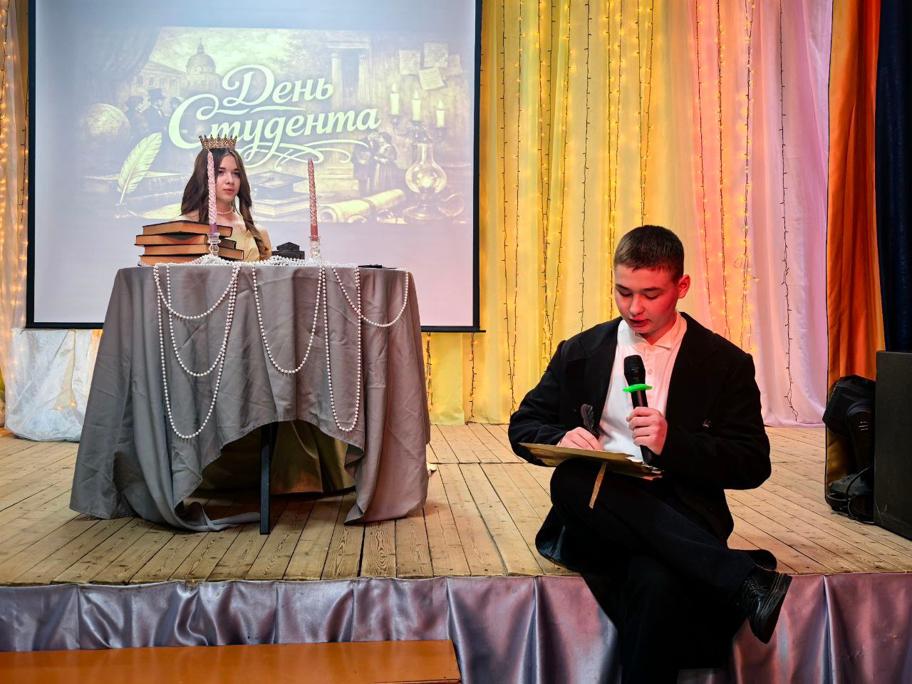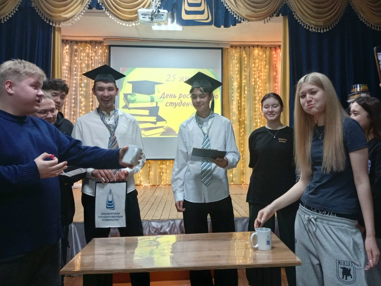 Кульминацией торжеств стала культурно-развлекательная программа «Где логика, студент?» в актовом зале филиала. Открыла мероприятие театрализованная зарисовка об основании первого Московского университета. Погрузившись в небольшую историю, студенты продемонстрировали яркую игру актеров Елизаветы Петровны и Ивана Ивановича Шувалова в лице команды КВН «ОГУзяки». По традиции в Татьянин день всех присутствующих, с замечательным праздником поздравила начальник управления СПО – Татьяна Абзалилова, пожелав студентам новых открытий, побед, интересных знакомств, здоровья и удачи! Советник директора по воспитанию Анастасия Ионова провела розыгрыш счастливых лотов, а студенты поделились своими секретами успешной сдачи сессии.