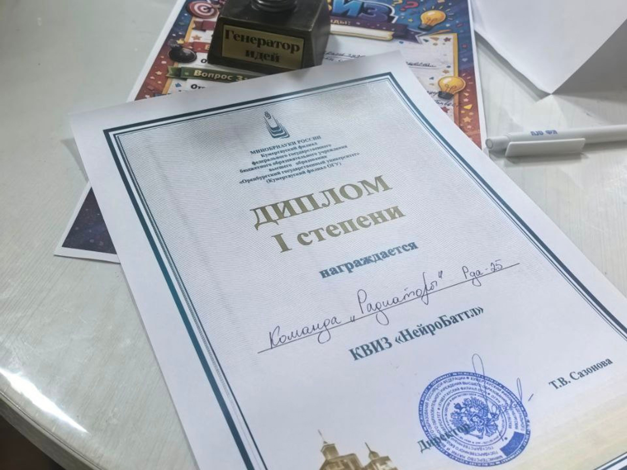 Завершили программу яркие выступления студенческих коллективов «Intemp» и ВА «Вираж & Фиеста», которые стали прекрасным дополнением к программе. А интеллектуальный квиз «Нейро баттл», бросивший вызов эрудиции участников с помощью нейросети, определил лучших в пяти захватывающих раундах по категориям: фильмы, мемы, известные личности. Победители и призеры были награждены памятными подарками, дипломами и аппетитной пиццей от собственного торгового отдела филиала.