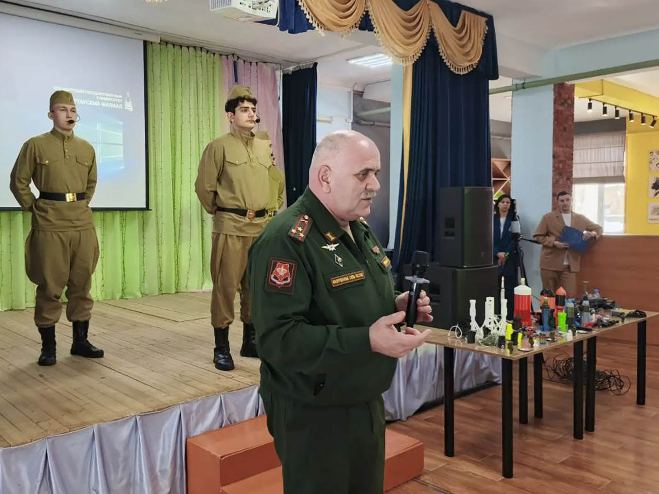 Далее члены комиссии посетили Кумертауский филиал ОГУ. Гостей встретили военно-патриотическим мероприятием, подготовленным студентами и отделом по социально-воспитательной работе, и выставкой БПЛА, которую представил старший преподаватель кафедры автомобилей и автомобильного хозяйства Кумертауского филиала ОГУ, руководитель волонтёрской группы «Инженерный рокот» Евгений Кириллов. Также была организована экскурсия по учебному заведению, которая позволила комиссии наглядно оценить масштабы работы по патриотическому воспитанию, оснащенность музейного центра филиала и кабинета ОБЖ. Комиссия проверила номенклатуру печатных изделий, как гражданского, так и воинского назначения. Параллельно в этот же день в ФОК «Юбилейный» состоялась сдача норм ГТО среди студентов до призывного возраста.