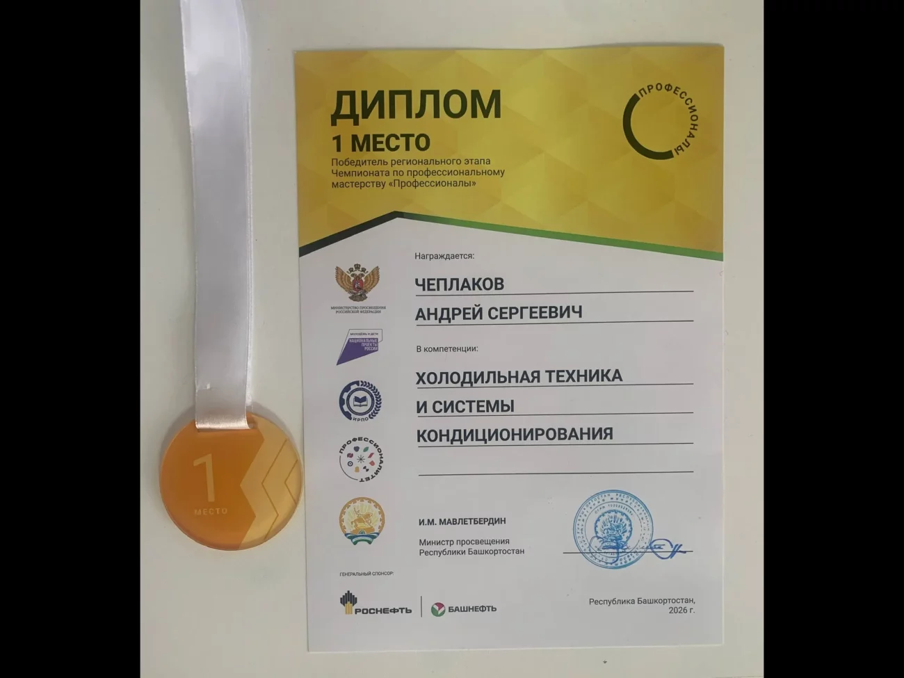 Впервые в Республике Башкортостан соревнования по компетенции «Холодильная техника и системы кондиционирования» были проведены на базе Мелеузовского многопрофильного колледжа, победу в которой одержал Андрей Чеплаков студент группы 22ТОРВ-1 отделения среднего профессионального образования, занявший заслуженное I место.