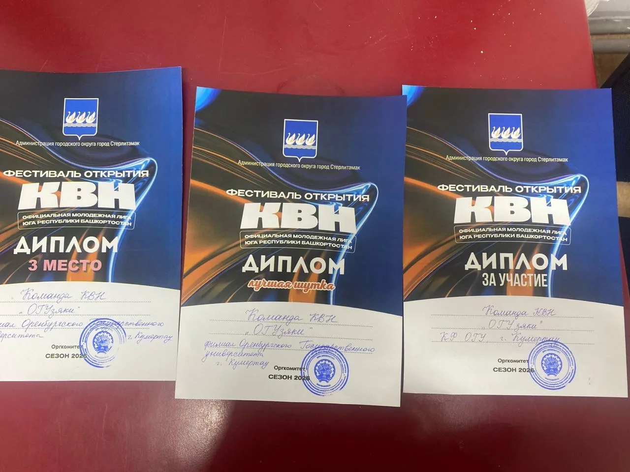 Особое внимание привлекла студенческая команда «ОГУзяки» из Кумертауского филиала ОГУ. С первых минут ребята покорили зал невероятной харизмой и искромётным юмором. Команды фестиваля были разделены на 4 блока, из каждого блока в сезон прошли по две команды. Уверенное выступление принесло им заслуженное третье место, кубок за «Лучшую шутку» и путёвку в 1/4 КВН официальной молодежной лиги юга РБ. Участники фестиваля успешно показали свою визитную карточку — «Приветствие», которая позволила им пройти в четверть финала сезона.