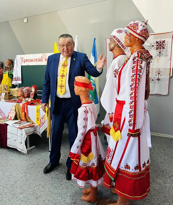 Выставка стала выездным музеем, бережно собранным энтузиастами. Анатолий Николаевич выступил не просто как организатор, но как увлечённый экскурсовод и хранитель традиций. Он подробно и с искренней любовью рассказал студентам о Чувашской Республике: её городах, сёлах и деревнях, а также об особенностях хозяйственной специализации региона. Студенты узнали много нового о народе, чья культура является неотъемлемой частью многонациональной палитры России.