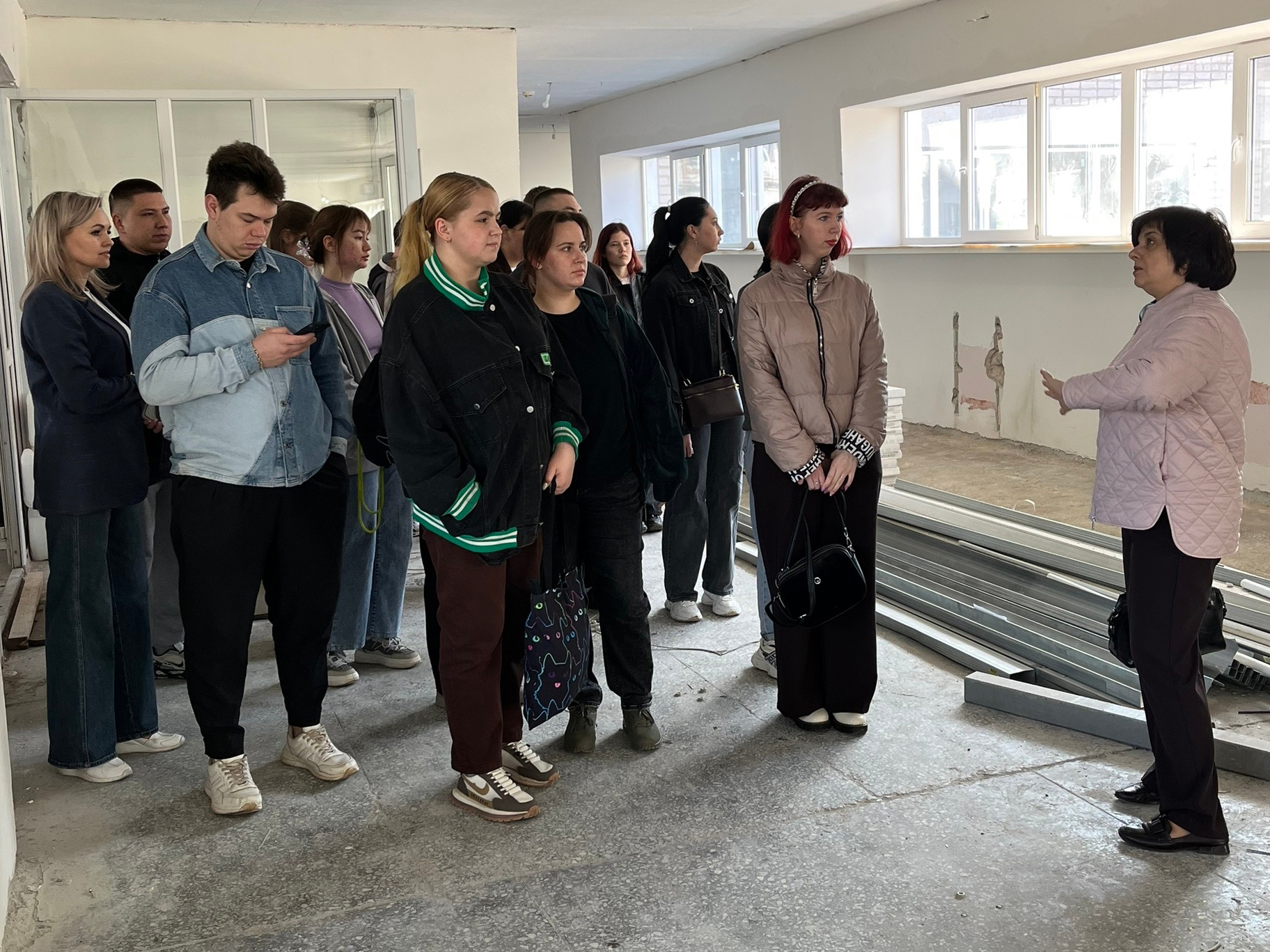 Свое знакомство с отраслью начали студенты направления подготовки «Строительство». На этот раз площадкой для выездного занятия стала МБОУ СОШ №6 г. Кумертау, где полным ходом идет капитальный ремонт. Примечательно, что дизайн-проект фасадной части и внутреннего пространства школы был разработан рабочей группой кафедры городского строительства и хозяйства (ГСХ) филиала. Таким образом, студенты смогли не только увидеть реализацию теоретических знаний своих наставников, но и проследить за соблюдением проектных решений в реальных условиях.