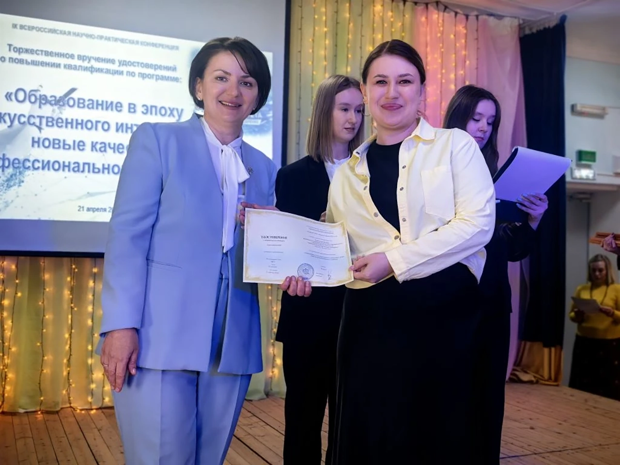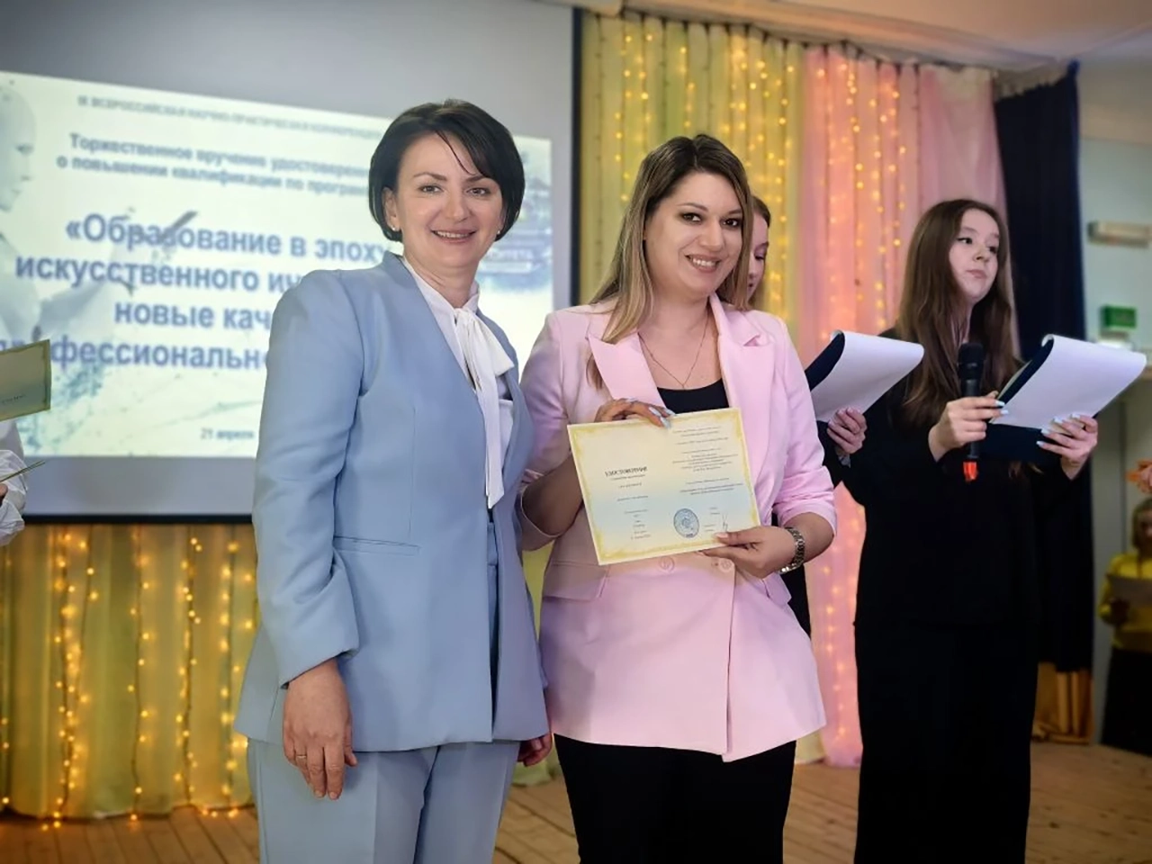 Итогом мероприятия стала торжественная церемония вручения удостоверений о повышении квалификации по программе «Образование в эпоху искусственного интеллекта: новые качества профессионального педагога». Это событие, символизирующее переход от теоретических обсуждений к реальной практике, было украшено вдохновляющими творческими номерами студентов филиала, доказавшими, что даже в век технологий место искусству и таланту остается неизменным. Организаторы выражают уверенность в том, что озвученные в ходе конференции решения и тезисы найдут практическое применение в образовательном процессе и послужат импульсом для дальнейшего развития как научной школы Кумертауского филиала ОГУ, так и всей системы образования города Кумертау.
