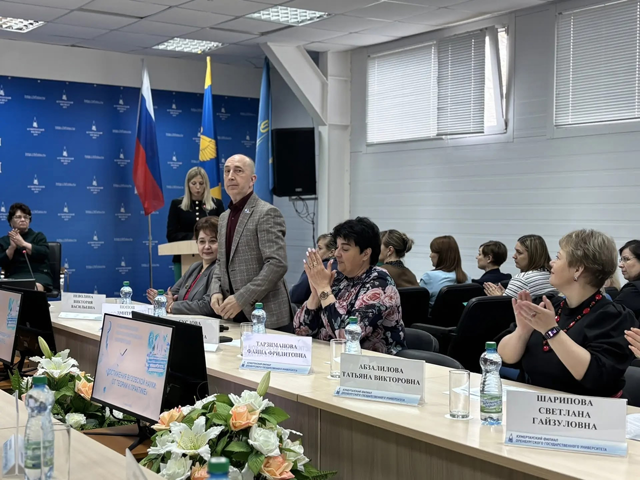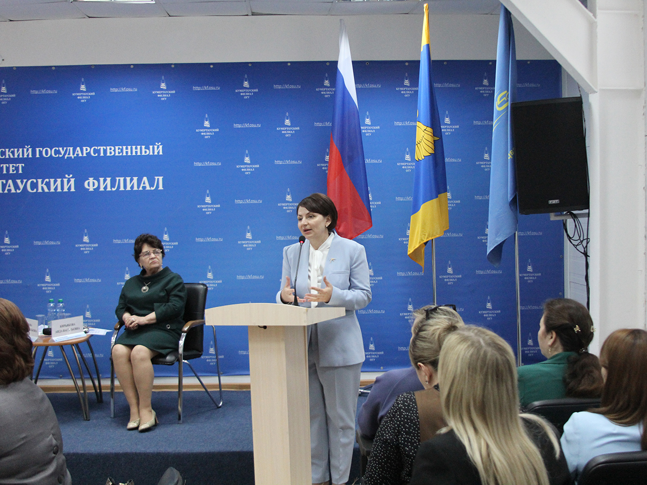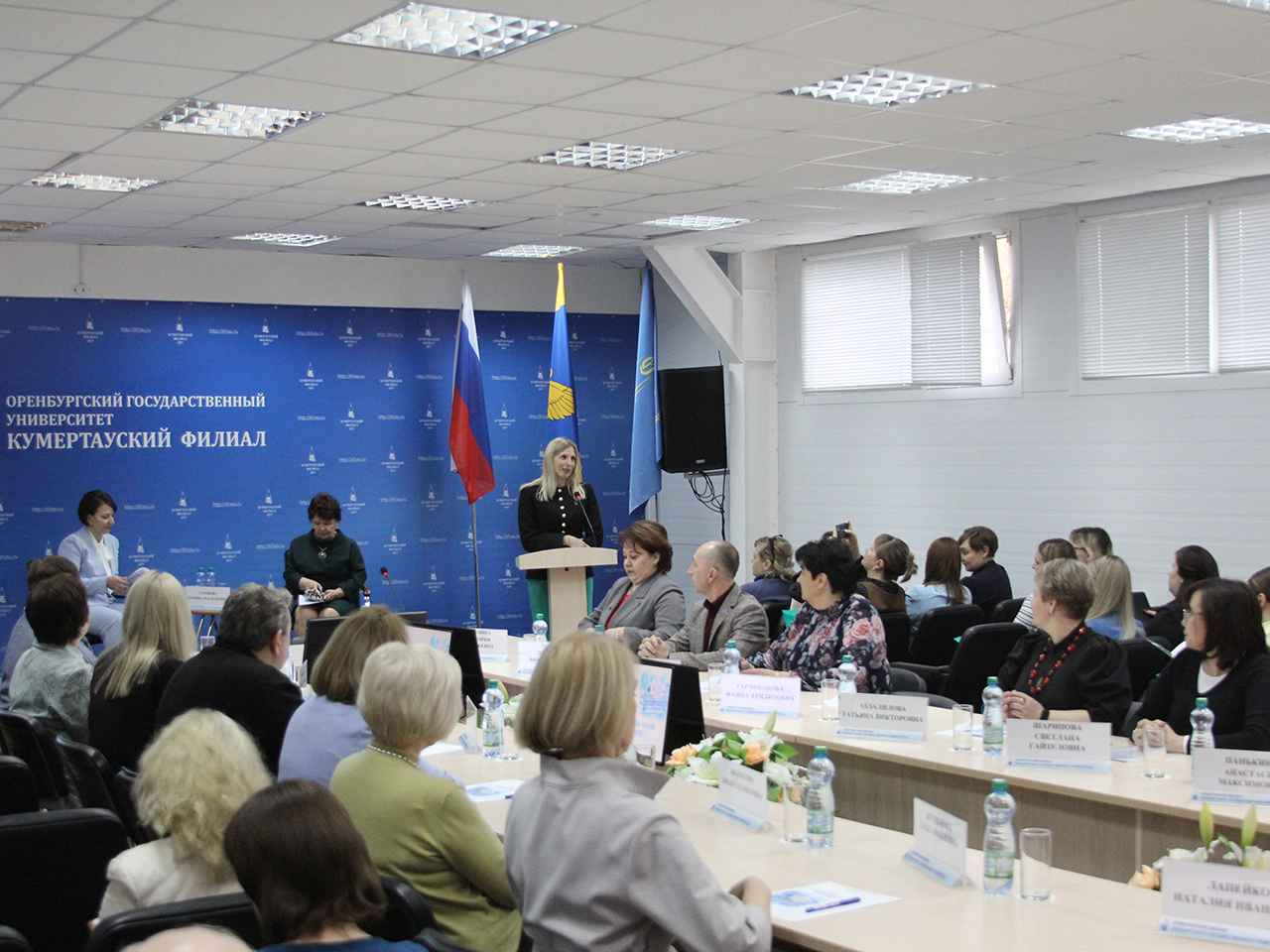 С приветственным словом ко всем присутствующим обратилась директор Кумертауского филиала ОГУ, доктор педагогических наук, доцент Татьяна Сазонова. В своем выступлении она подчеркнула важность живого научного диалога, пожелала всем участникам продуктивной работы и неиссякаемого творческого вдохновения.
