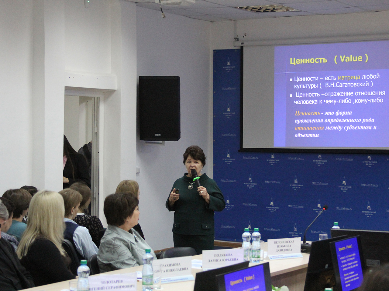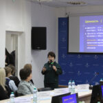 Открыла дискуссию Аида Кирьякова профессор кафедры общей и профессиональной педагогики ОГУ имени В. А. Бондаренко, доктор педагогических наук, Заслуженный деятель науки РФ. В своем докладе «Аксиологическое измерение эпохи искусственного интеллекта. Эволюция, ценности, молодежь» Аида Васильевна сравнила ценности поколений за сто лет и призвала коллег задуматься о сохранении человечности в передаче нравственных ориентиров новому поколению в век цифрового образования.