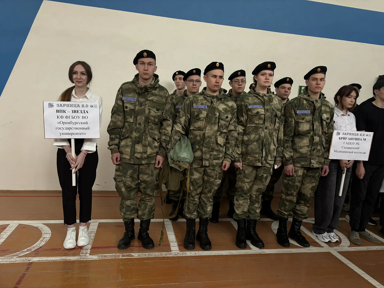 Честь Кумертауского филиала ОГУ защищали студенты отделения среднего профессионального образования: Ишкулов Урал, Амиров Айнур, Нечаев Ярослав, Быдтаев Давид, Александрова Валерия, Санникова Ульяна, Кашапов Артём, Нестрогаев Егор, Маляров Савелий, Михелев Илья совместно с Сергеем Кирюшиным, военным руководителем ВПК «Звезда» и преподавателем ОБЗР и БЖД, а также Лилией Зубаировой, специалистом отдела СВР, наставником команды и куратором «Движения Первых».