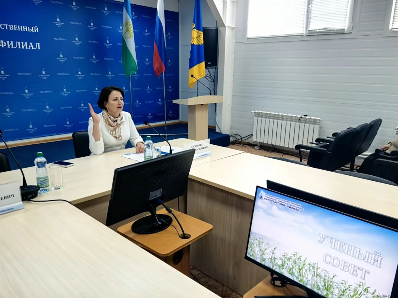 С приветственным словом и докладом о результатах работы Ученого совета за прошедший период выступила председатель совета, директор Кумертауского филиала ОГУ, доктор педагогических наук, кандидат технических наук, доцент — Татьяна Сазонова. В своем выступлении она подвела итоги развития филиала, отметив ключевые достижения в образовательной, научной и воспитательной деятельности. Делегаты единогласно приняли отчет к сведению.