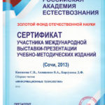 Пособие С.В.Книжник, В.А.Анищенко и Д.Ф.Барсуковой «Информационные технологии» (сборник тестов) и выше названное пособие в XVIII Международной выставке-презентации учебно-методических изданий были отмечены сертификатами и дипломами Лауреата всероссийской выставки из серии «Золотой фонд Отечественной науки». Всего в выставке приняли участие около 100 учебно-методических изданий.