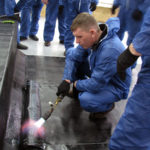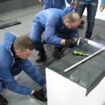 Во второй день обучения все полученные слушателями знания были закреплены на стендах-тренажерах и были преобразованы в рабочие навыки. После демонстрации преподавателем монтажа строительных систем на «стендах-тренажерах» рулонных кровельных материалов каждый слушатель курсов выполнял кровельные работы самостоятельно.