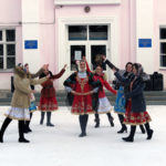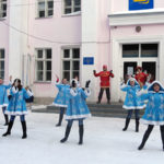На смену своенравной Зиме в окружении Снежинок пришла красавица-Весна с песнями, играми. Всех гостей закружил веселый хоровод, а самые удалые померились силами в перетягивании каната и комическом футболе. Самых активных участников Весна наградила ожерельем из баранок, а всех гостей накормила вкусными блинами.