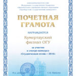 2 ноября в ДК «Россия» г. Оренбург состоялся отборочный тур смотра-конкурса «Студенческая осень — 2016», где Кумертауский филиал ОГУ представил полуторачасовую концертную программу «Тихо. Идет съемка фильма». По результатам конкурсного отбора 18 ноября состоялся гала-концерт, в котором приняли участие творческие студенческие коллективы 18 факультетов и 2 институтов ОГУ, Бузулукского гуманитарно-технологического института (филиала) ОГУ, Орского гуманитарно-технологического института (филиала) ОГУ и
