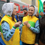 Молодых людей в фирменных куртках фестиваля и Башкортостана, сошедших с поезда, нельзя было не заметить, так же как и встречавших их студентов. Громкие аплодисменты, флаги с символикой ОГУ и города Кумертау, яркие шары и студенческий гимн – привлекли всеобщее внимание.