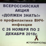 29 ноября 2018 года состоялось мероприятие «Стоп ВИЧ/СПИД» в рамках Всероссийской информационной акции по профилактике ВИЧ-инфекции и ассоциированных с ней заболеваний в молодежной среде «Должен знать!».