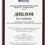 Диплом III степени «Комплексный проект реконструкции нежилого здания по ул. Аксакова, 22 в г. Кумертау РБ», автор Усманов Динар, руководитель Черноглазова Гузалия Гусмановна.
