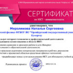 Доцент кафедры экономических и общеобразовательных дисциплин Мерзлякова Наталья Сергеевна приняла участие в Международном педагогическом конкурсе «Мои педагогические разработки».