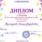 В ноябре и декабре 2020 г. студенты групп 19Эк(ба)ЭПО и 20Эк(ба)ЭПО Осадчая А., Гринина В., Тухтарова Д., Устинова Д., Утягулова А. приняли активное участие во Всероссийской викторине по английскому языку «Films and cartoons» под руководством доцента кафедры экономических и общеобразовательных дисциплин Мерзляковой Н.С.